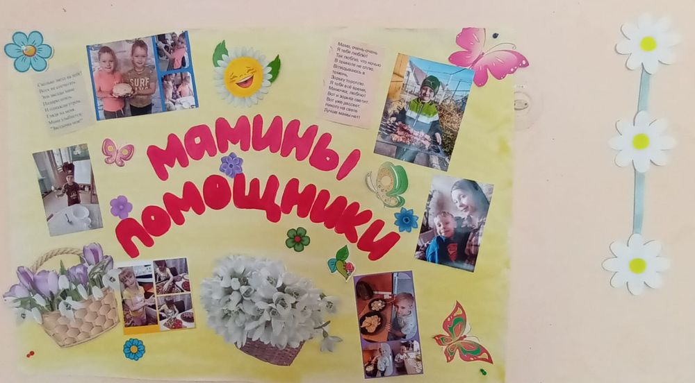 В нашей группе "Радуга" стало традицией устраивать различные выставки к праздникам. В преддверие весеннего, душевного праздника 8 марта, у нас в детском саду прошла выставка работ, выполненных в разном стиле: это и поделки для мамы, и открытки, и рисунки. А также воспитатели оформили стенгазету "МАМИНЫ ПОМОЩНИКИ" .И поздравили мам и бабушек с международным женским днём!