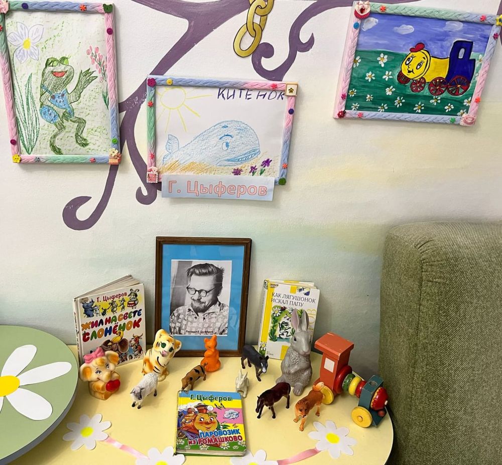 В этом году мы отмечаем 95 лет со дня рождения детского писателя и сценариста Г.М. Цыферова, милые и добрые истории которому знакомы каждому из нас. Дети группы «Радуга» познакомились с биографией писателя и его творчеством. Прочитали произведения такие, как «Одинокий ослик», «Жил на свете слоненок», «Китенок», «Надо подумать». А затем поставили постановку по сказке «Одинокий ослик» и нарисовали сюжеты из сказок.