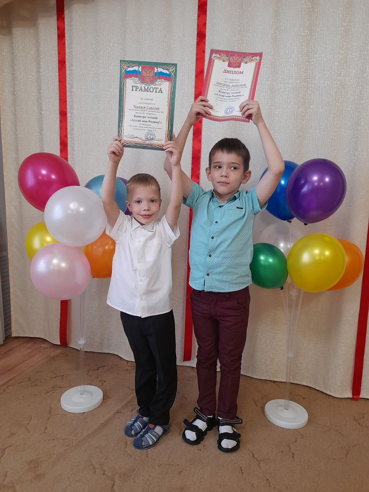 У нас в городе и детском саду стало традицией проводить конкурс чтецов под названием «А у нас на Алтае». Воспитанники нашей группы Черняев Савелий и Дмитриев Александр приняли активное участие в этом конкурсе.