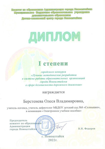 Главная | Наша жизнь | Фотогалерея | Берстенева Олеся Владимировна | Мои достижения | 2022г Диплом