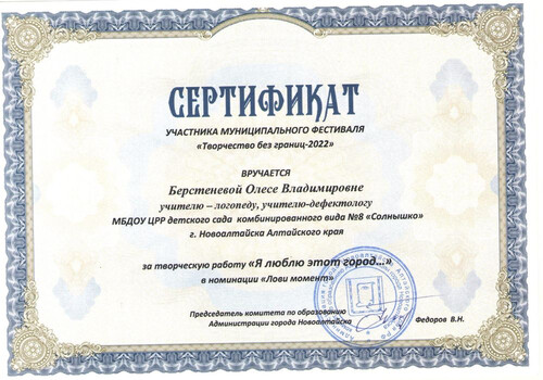 Главная | Наша жизнь | Фотогалерея | Берстенева Олеся Владимировна | Мои достижения | 2022г. Творчество без границ