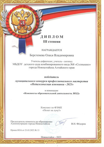 Главная | Наша жизнь | Фотогалерея | Берстенева Олеся Владимировна | Мои достижения | 2023г. Диплом 3