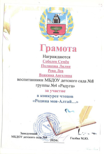 Главная | Наша жизнь | Фотогалерея | Бурковская Ульяна Александровна | Достижения детей | Родина моя - Алтай 2024г.