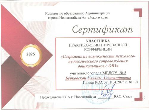 Главная | Наша жизнь | Фотогалерея | Бурковская Ульяна Александровна | Мои достижения | Сертификат участника 2025г.
