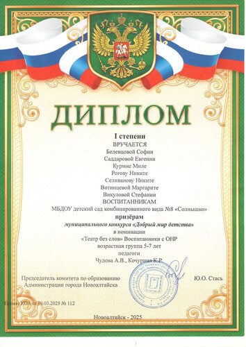 Главная | Наша жизнь | Фотогалерея | Чудова Анастасия Викторовна | Достижения детей | 2025г. Добрый мир детства