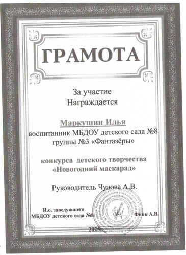 Главная | Наша жизнь | Фотогалерея | Чудова Анастасия Викторовна | Достижения детей | 2025г. Макрушин И