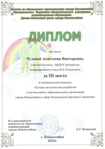 Главная | Наша жизнь | Фотогалерея | Чудова Анастасия Викторовна | Мои достижения | 2024г. Диплом 3