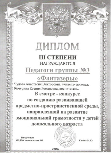 Главная | Наша жизнь | Фотогалерея | Чудова Анастасия Викторовна | Мои достижения | 2025г. Группа 3