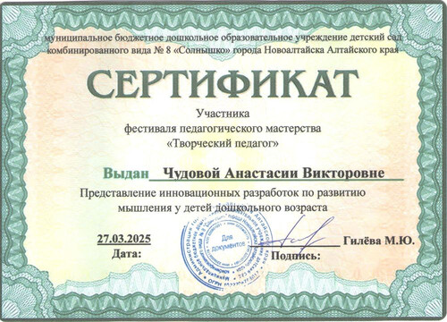 Главная | Наша жизнь | Фотогалерея | Чудова Анастасия Викторовна | Мои достижения | 2025г. Сертификат (2)