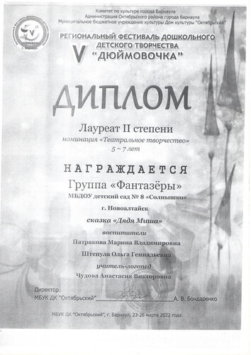 Муниципальное бюджетное дошкольное образовательное учреждение детский сад комбинированного вида № 8 "Солнышко" города Новоалтайска