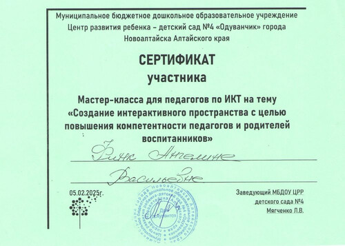 Главная | Наша жизнь | Фотогалерея | Финк Ангелина Васильевна | Мои достижения | Сертификат 2025г.