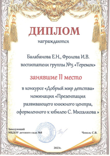 Главная | Наша жизнь | Фотогалерея | Фролова Инна Владимировна | Мои достижения | Диплом 2 Берстенева ОВ, Фролова ИВ