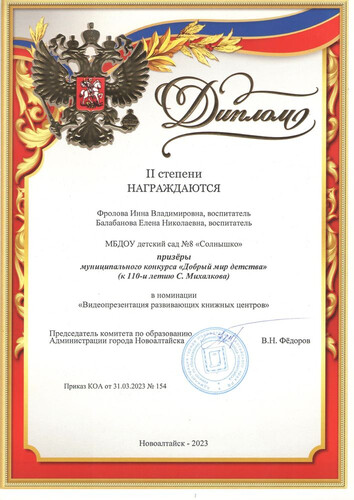 Главная | Наша жизнь | Фотогалерея | Фролова Инна Владимировна | Мои достижения | Диплом 2 Фролова ИВ