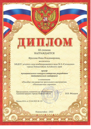 Главная | Наша жизнь | Фотогалерея | Фролова Инна Владимировна | Мои достижения | Диплом 3 Фролова ИВ