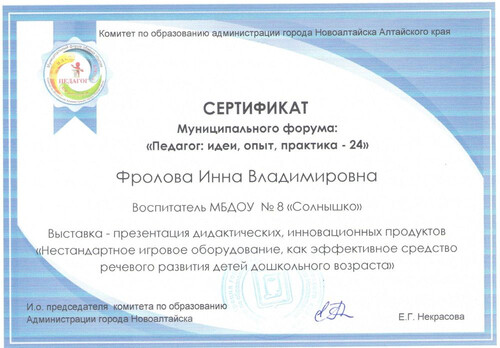 Главная | Наша жизнь | Фотогалерея | Фролова Инна Владимировна | Мои достижения | Сертификат Фролова ИВ