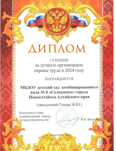 Муниципальное бюджетное дошкольное образовательное учреждение детский сад комбинированного вида № 8 "Солнышко" города Новоалтайска
