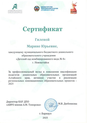 Муниципальное бюджетное дошкольное образовательное учреждение детский сад комбинированного вида № 8 "Солнышко" города Новоалтайска
