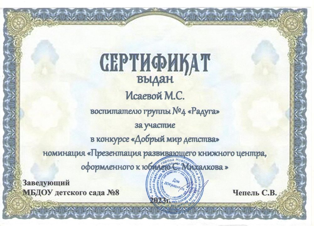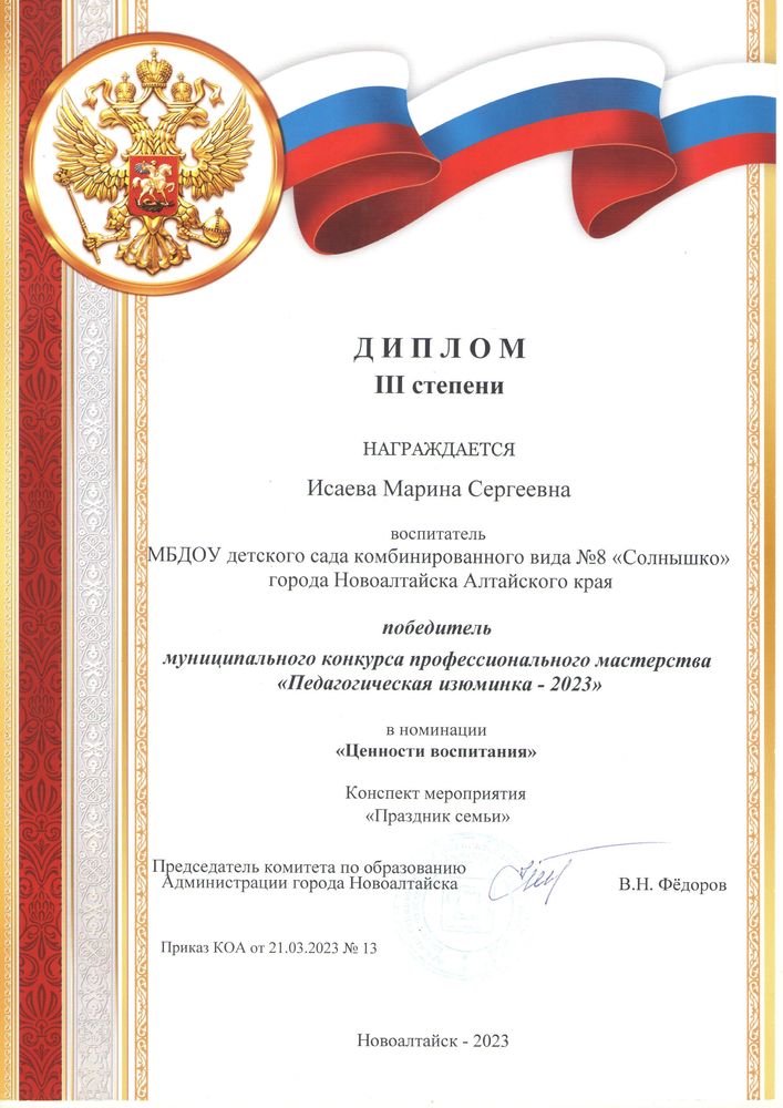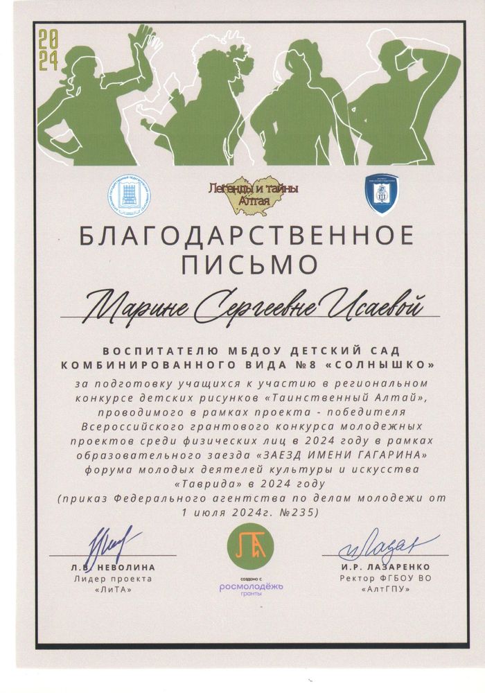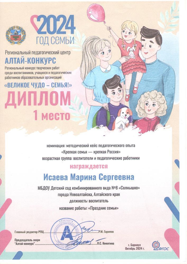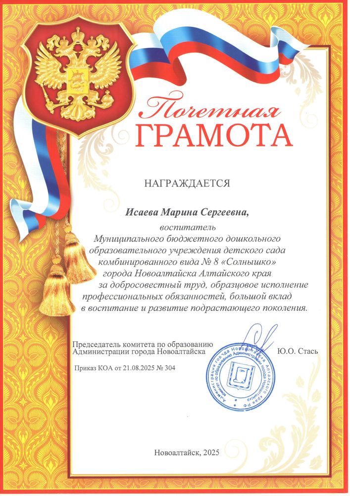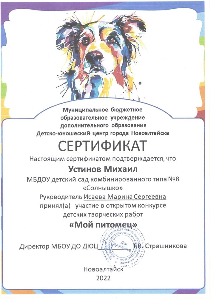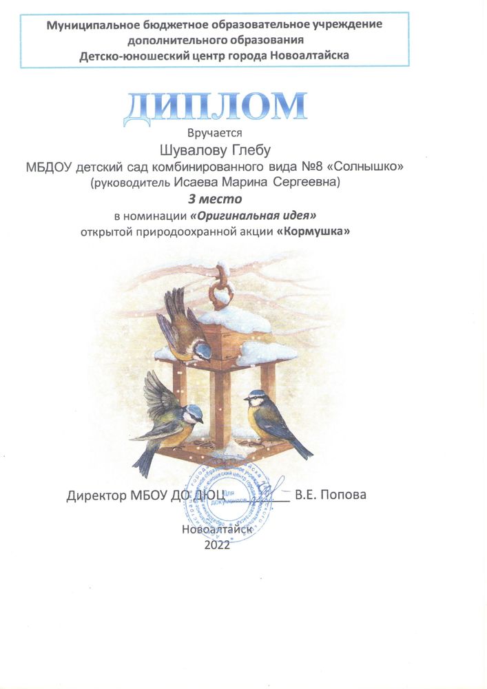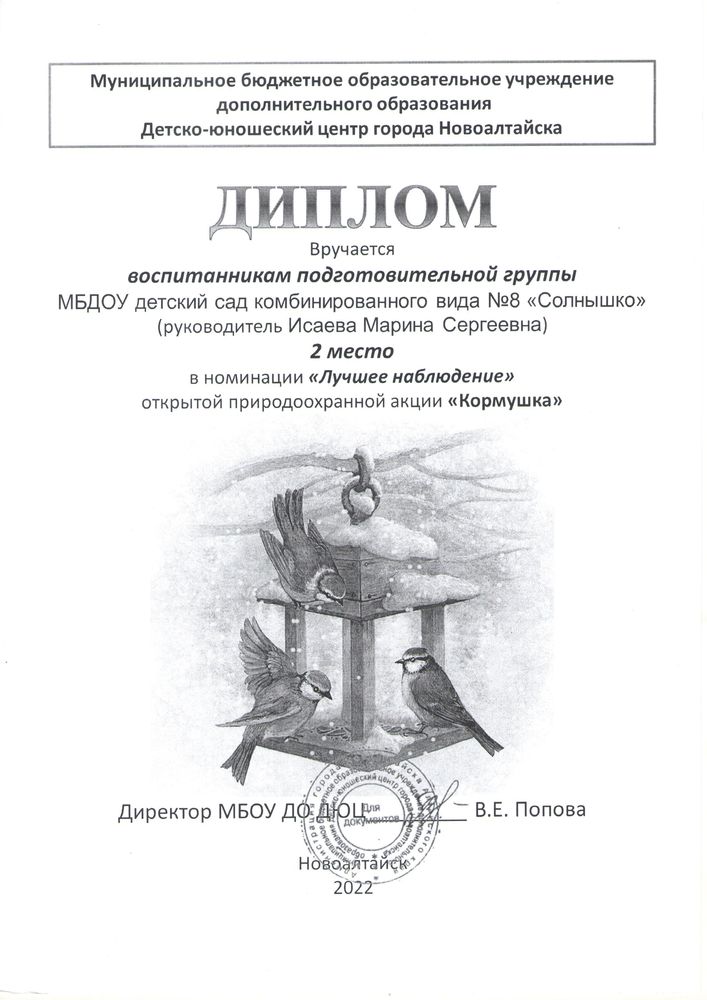 Муниципальное бюджетное дошкольное образовательное учреждение детский сад комбинированного вида № 8 "Солнышко" города Новоалтайска