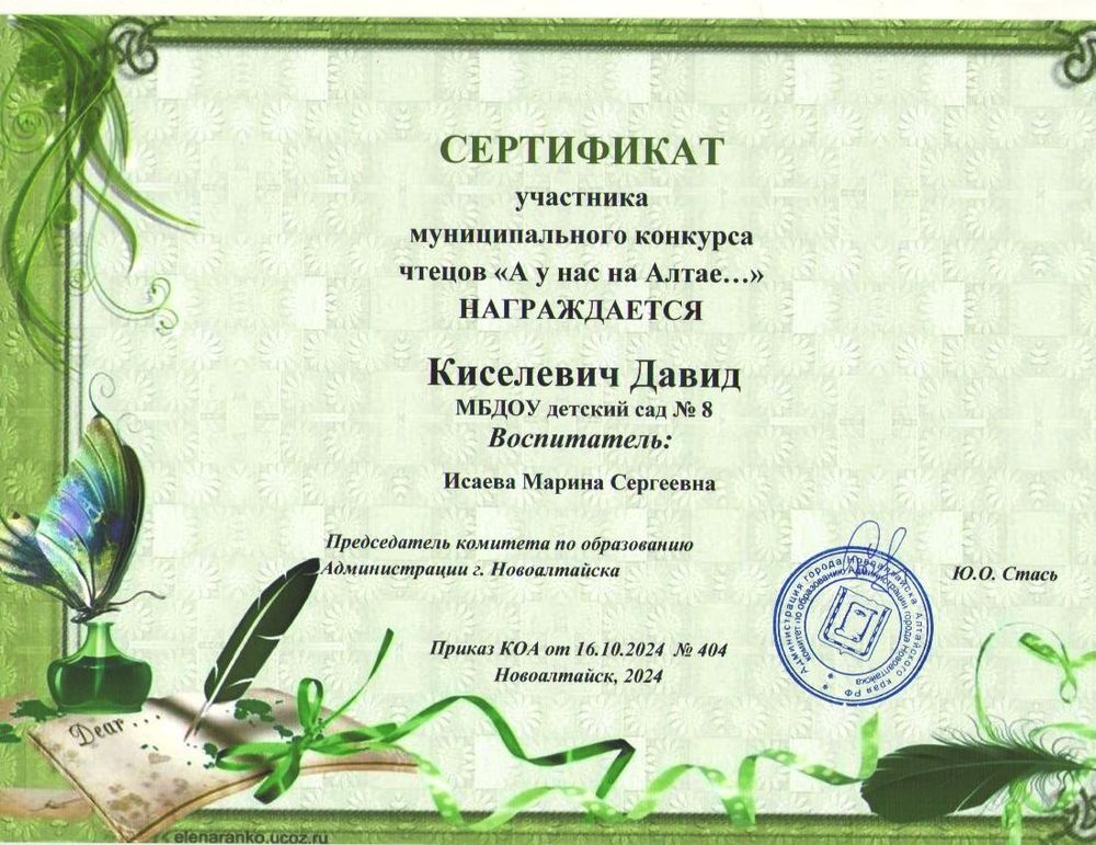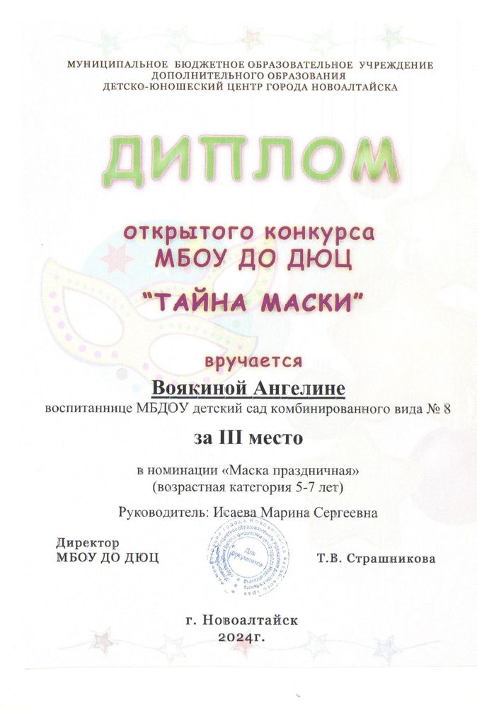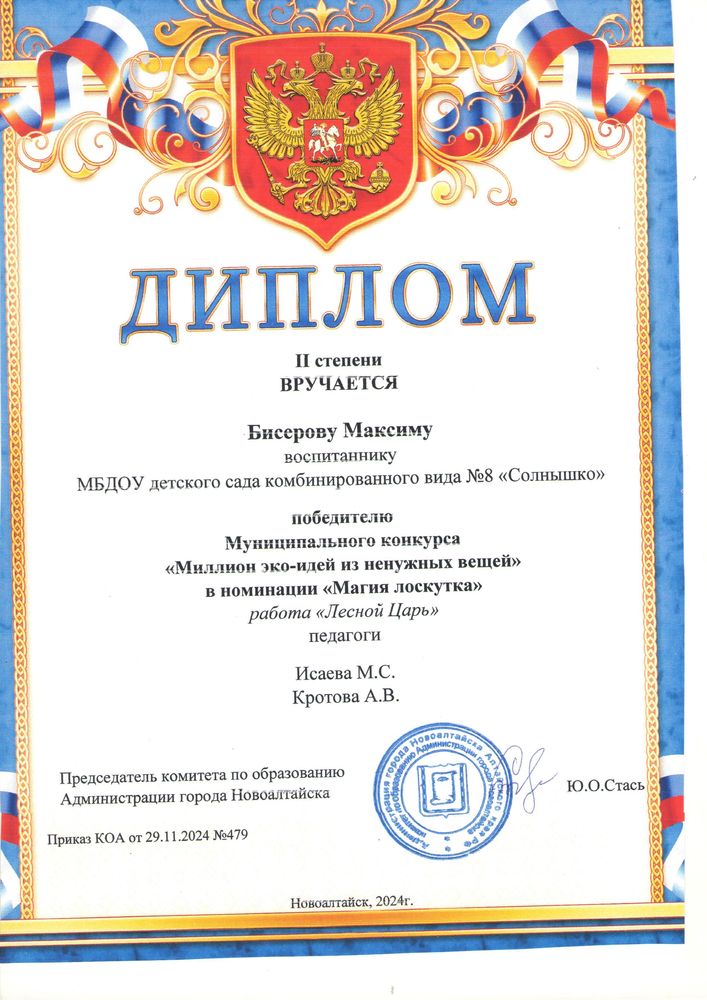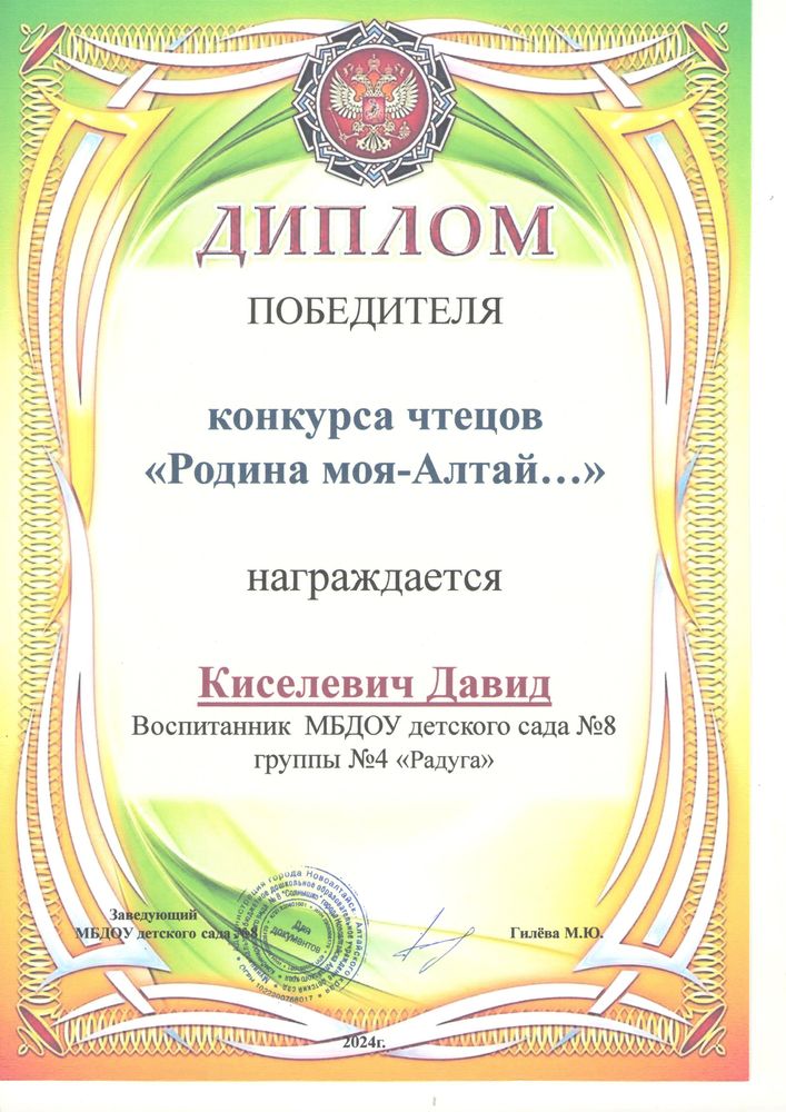 Муниципальное бюджетное дошкольное образовательное учреждение детский сад комбинированного вида № 8 "Солнышко" города Новоалтайска