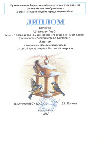 Главная | Наша жизнь | Фотогалерея | Исаева Марина Сергеевна | Достижения детей | 2022г. Шувалов Г