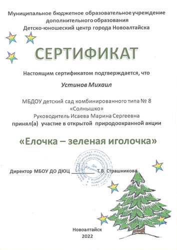 Главная | Наша жизнь | Фотогалерея | Исаева Марина Сергеевна | Достижения детей | 2022г Устинов М.