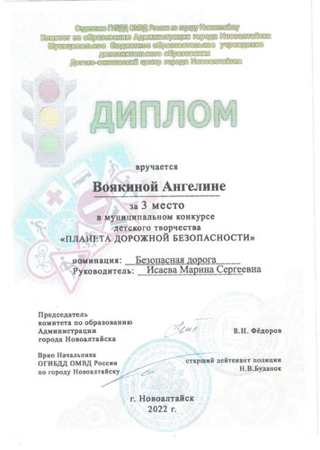 Главная | Наша жизнь | Фотогалерея | Исаева Марина Сергеевна | Достижения детей | 2022г. Воякина А.