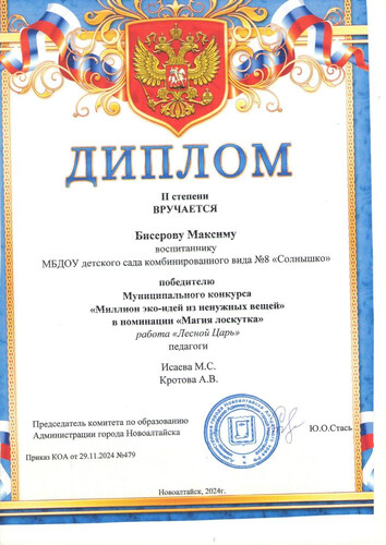 Главная | Наша жизнь | Фотогалерея | Исаева Марина Сергеевна | Достижения детей | 2024г. Бисеров М.