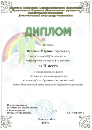 Главная | Наша жизнь | Фотогалерея | Исаева Марина Сергеевна | Мои достижения | 2024г. Диплом (2)