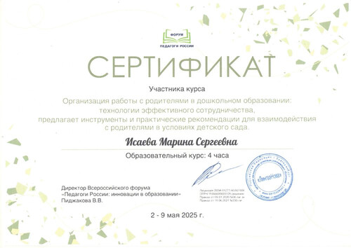 Главная | Наша жизнь | Фотогалерея | Исаева Марина Сергеевна | Мои достижения | 2025г. Сертификат участника (2)
