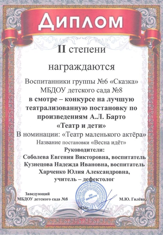 Муниципальное бюджетное дошкольное образовательное учреждение детский сад комбинированного вида № 8 "Солнышко" города Новоалтайска