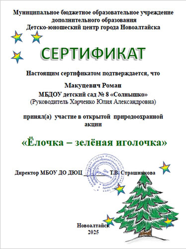 Главная | Наша жизнь | Фотогалерея | Харченко Юлия Александровна | Достижения детей | 2025г. Макуцевич Р.