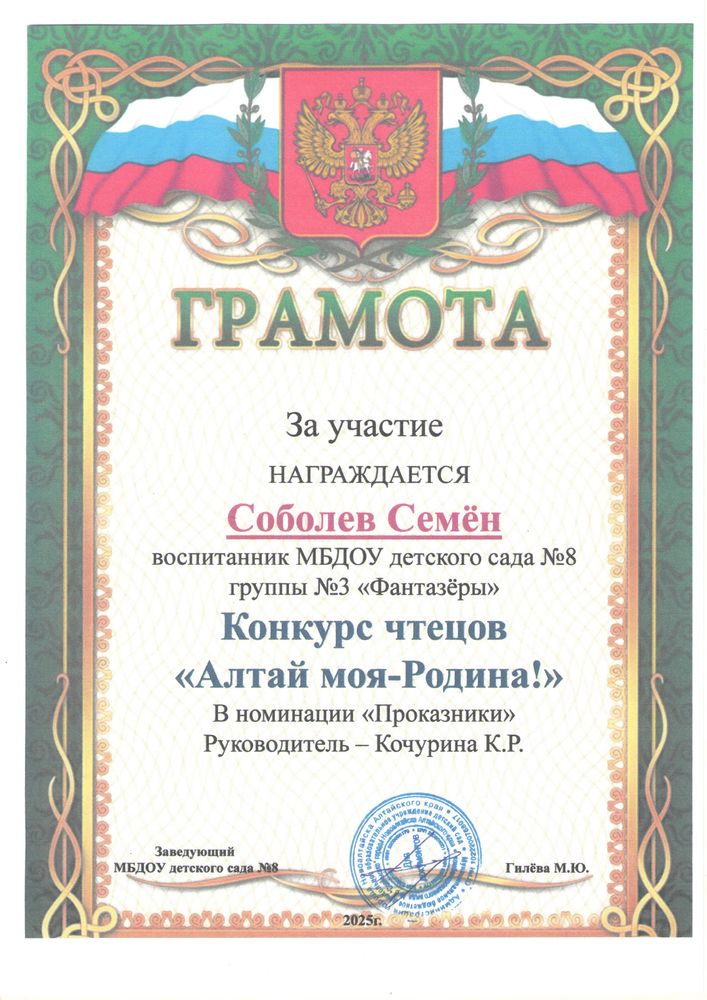 Главная » Фотогалерея » Кочурина Ксения Романовна » Достижения детей