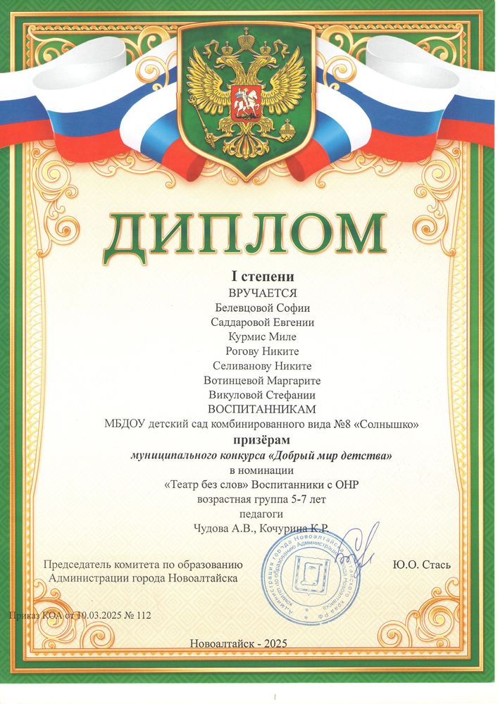 Муниципальное бюджетное дошкольное образовательное учреждение детский сад комбинированного вида № 8 "Солнышко" города Новоалтайска