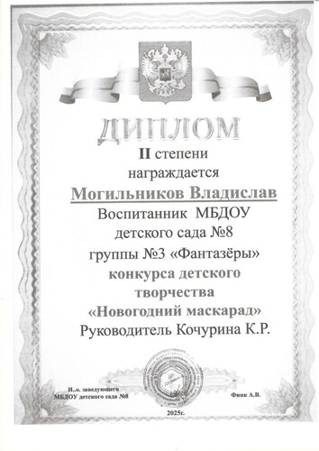 Главная | Наша жизнь | Фотогалерея | Кочурина Ксения Романовна | Достижения детей | 2025г. Могильников В.