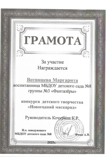 Главная | Наша жизнь | Фотогалерея | Кочурина Ксения Романовна | Достижения детей | 2025г. Викулова М.
