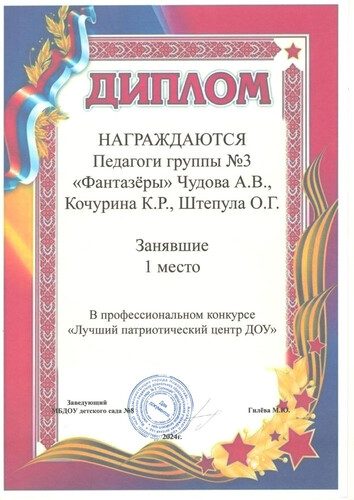 Главная | Наша жизнь | Фотогалерея | Кочурина Ксения Романовна | Мои достижения | 2024г. группа 3