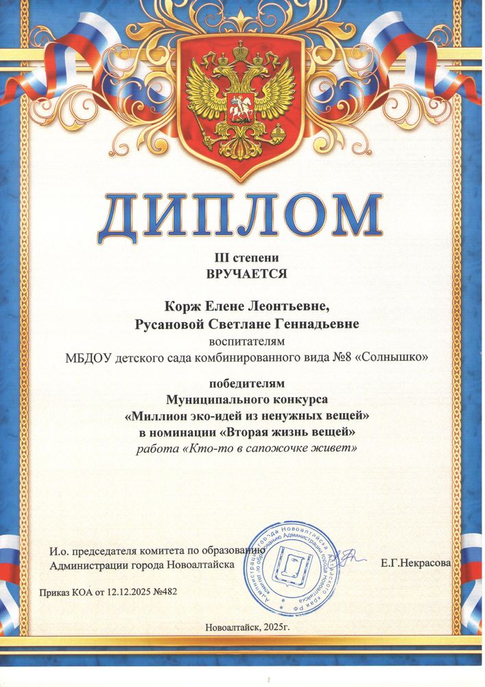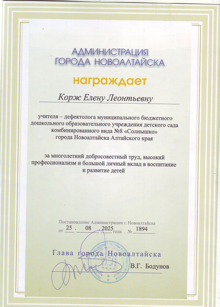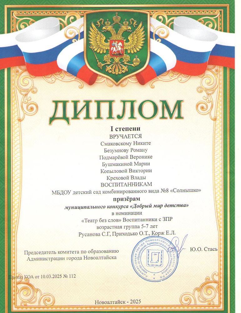 Муниципальное бюджетное дошкольное образовательное учреждение детский сад комбинированного вида № 8 "Солнышко" города Новоалтайска