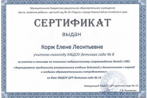 Главная | Наша жизнь | Фотогалерея | Корж Елена Леонтьевна | Мои достижения | Сертификат Корж