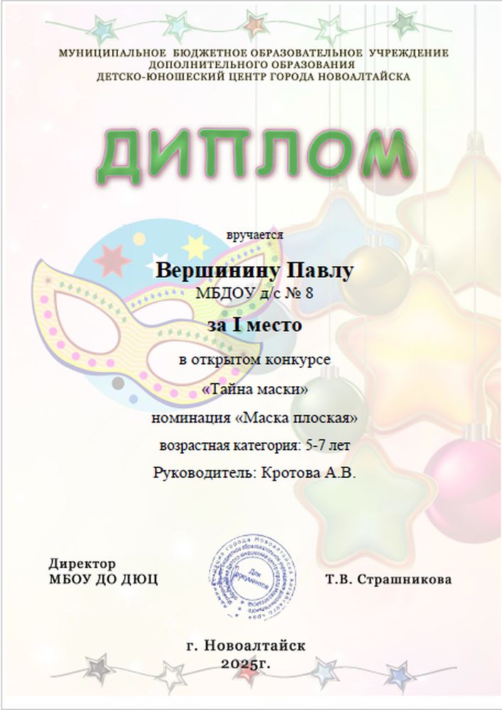 Муниципальное бюджетное дошкольное образовательное учреждение детский сад комбинированного вида № 8 "Солнышко" города Новоалтайска