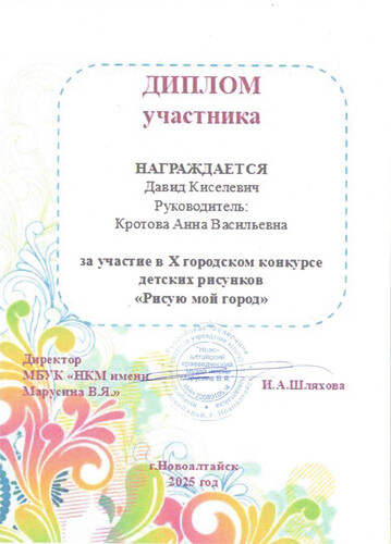 Главная | Наша жизнь | Фотогалерея | Кротова Анна Васильевна | Достижения детей | 2025г. Киселевич Давид