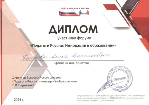 Главная | Наша жизнь | Фотогалерея | Кротова Анна Васильевна | Мои достижения | Диплом 2 место 24г.