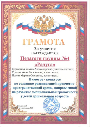 Главная | Наша жизнь | Фотогалерея | Кротова Анна Васильевна | Мои достижения | Грамота за участие 2025. Конкурс Эмоций