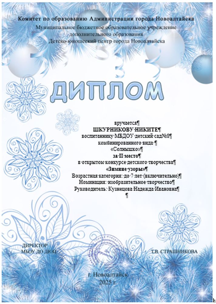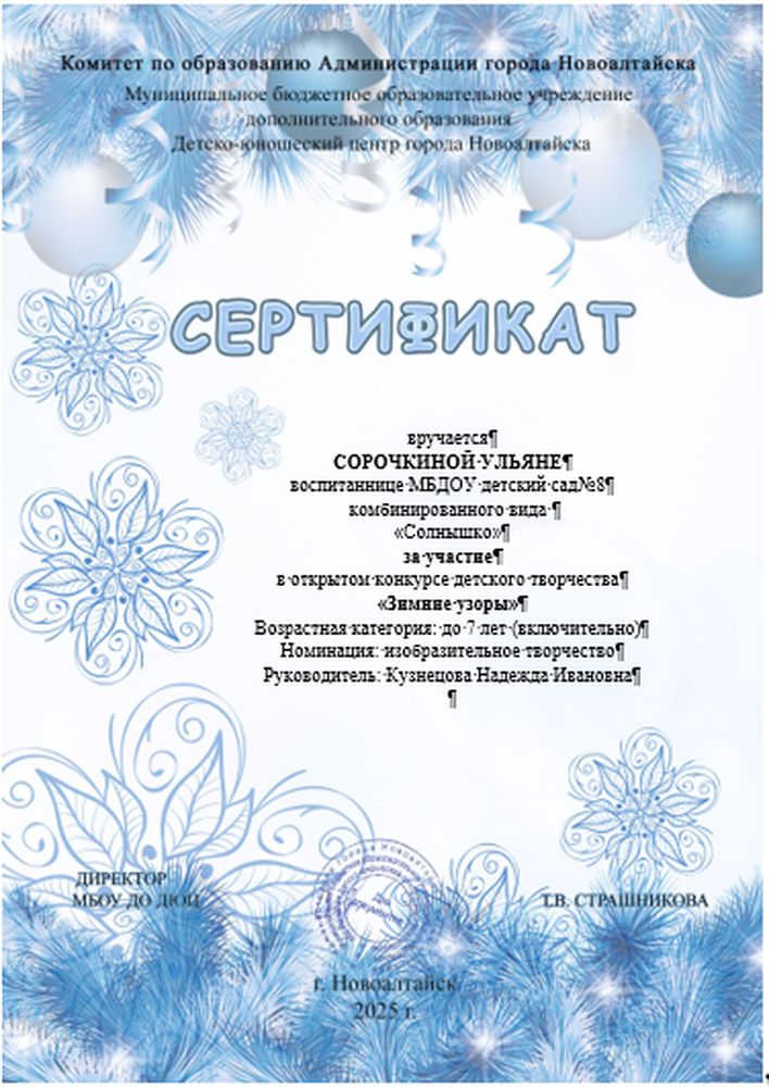 Муниципальное бюджетное дошкольное образовательное учреждение детский сад комбинированного вида № 8 "Солнышко" города Новоалтайска