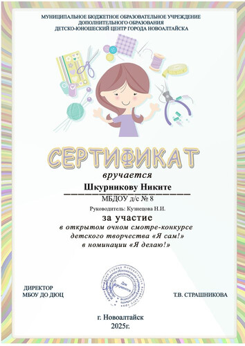 Главная | Наша жизнь | Фотогалерея | Кузнецова Надежда Ивановна | Достижения детей | 2025 Шкурников Н