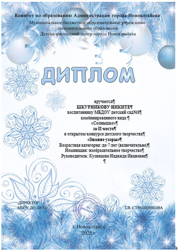 Главная | Наша жизнь | Фотогалерея | Кузнецова Надежда Ивановна | Достижения детей | Шкурников Никита