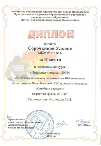 Главная | Наша жизнь | Фотогалерея | Кузнецова Надежда Ивановна | Достижения детей | Сорочкина У., рук Кузнецова