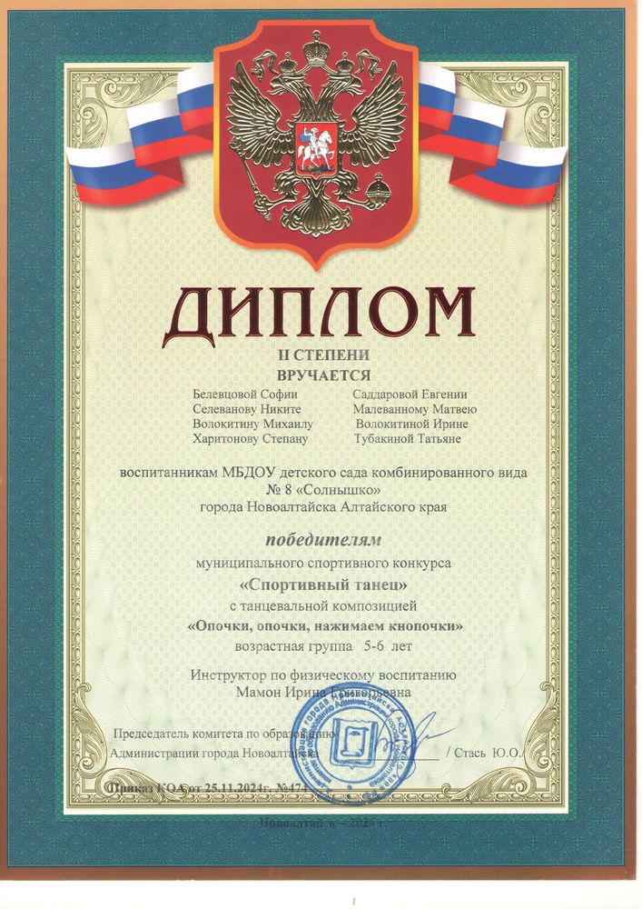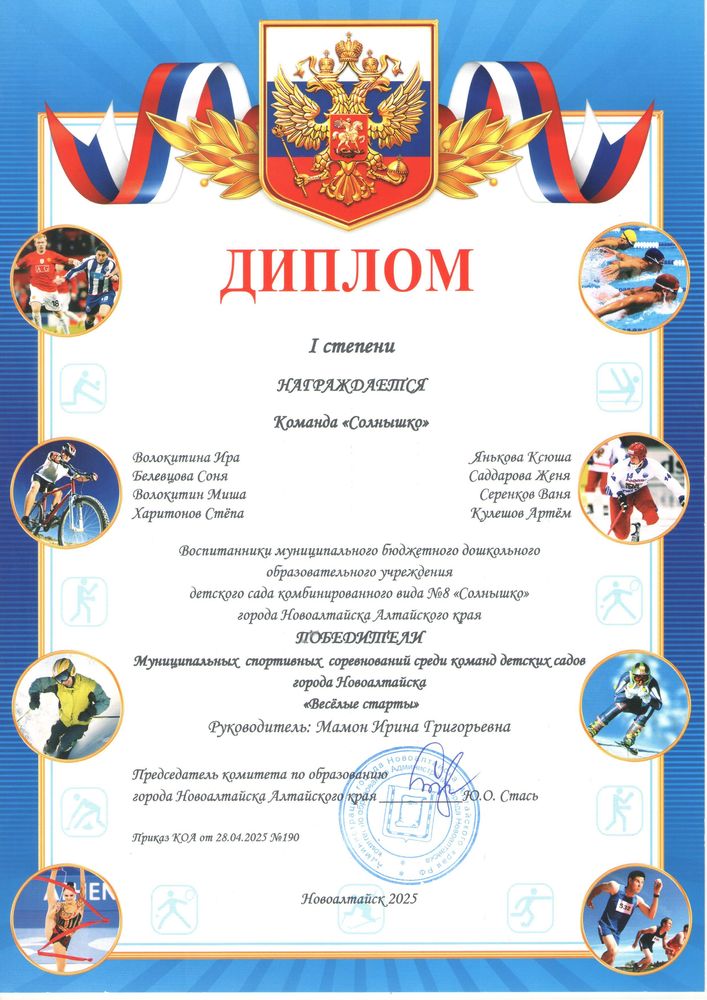 Муниципальное бюджетное дошкольное образовательное учреждение детский сад комбинированного вида № 8 "Солнышко" города Новоалтайска