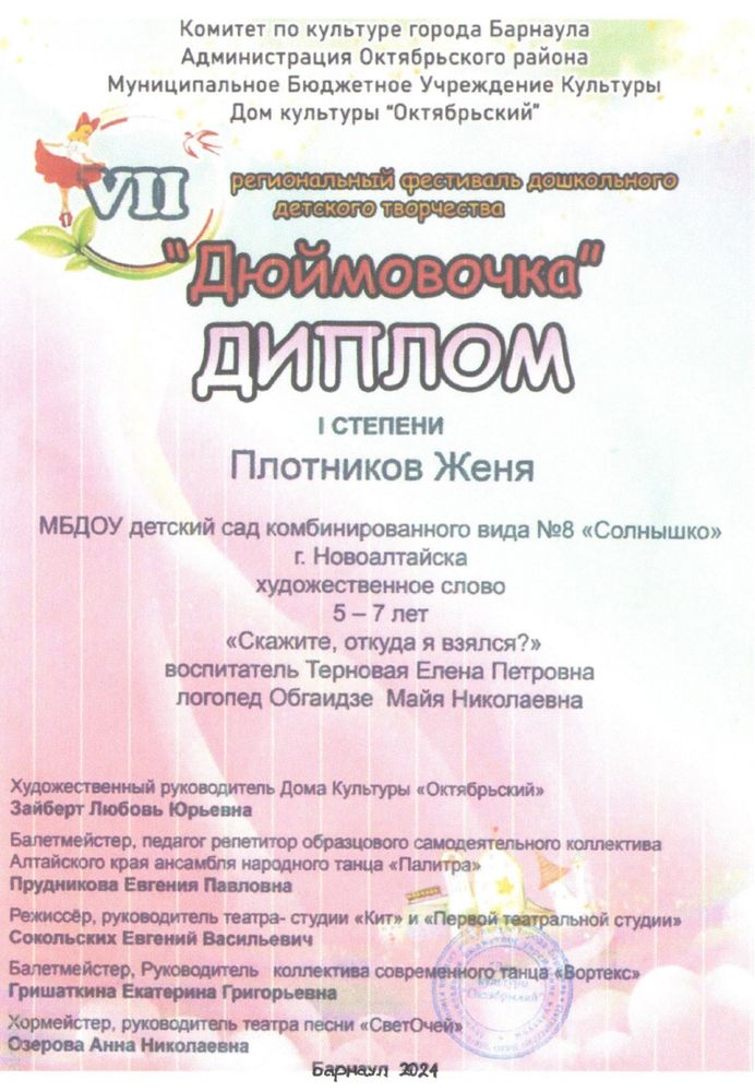 Муниципальное бюджетное дошкольное образовательное учреждение детский сад комбинированного вида № 8 "Солнышко" города Новоалтайска