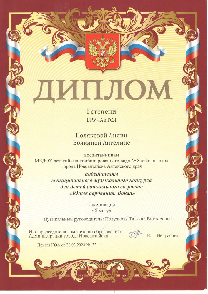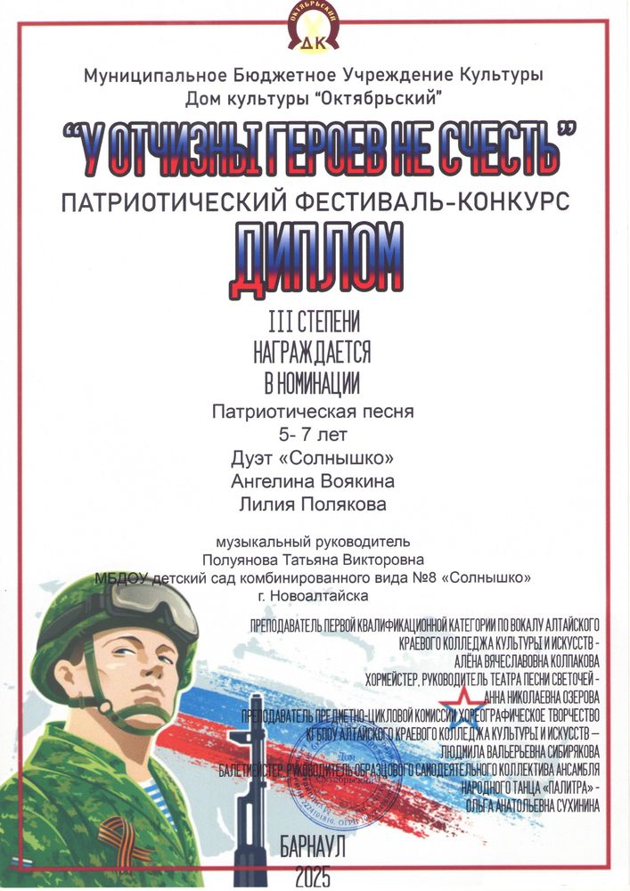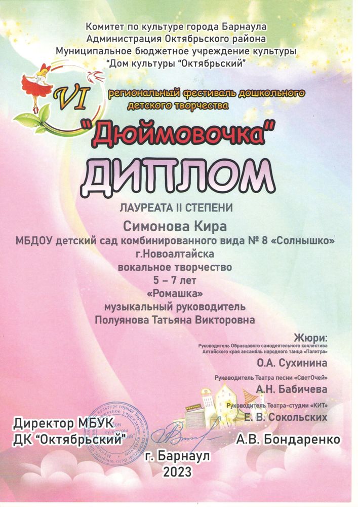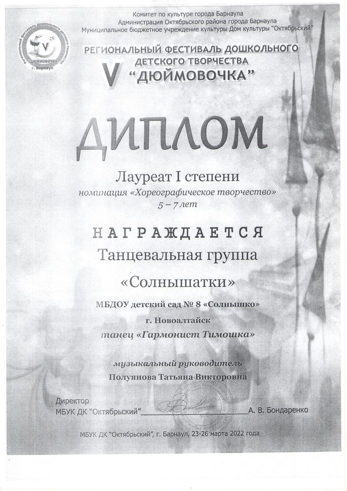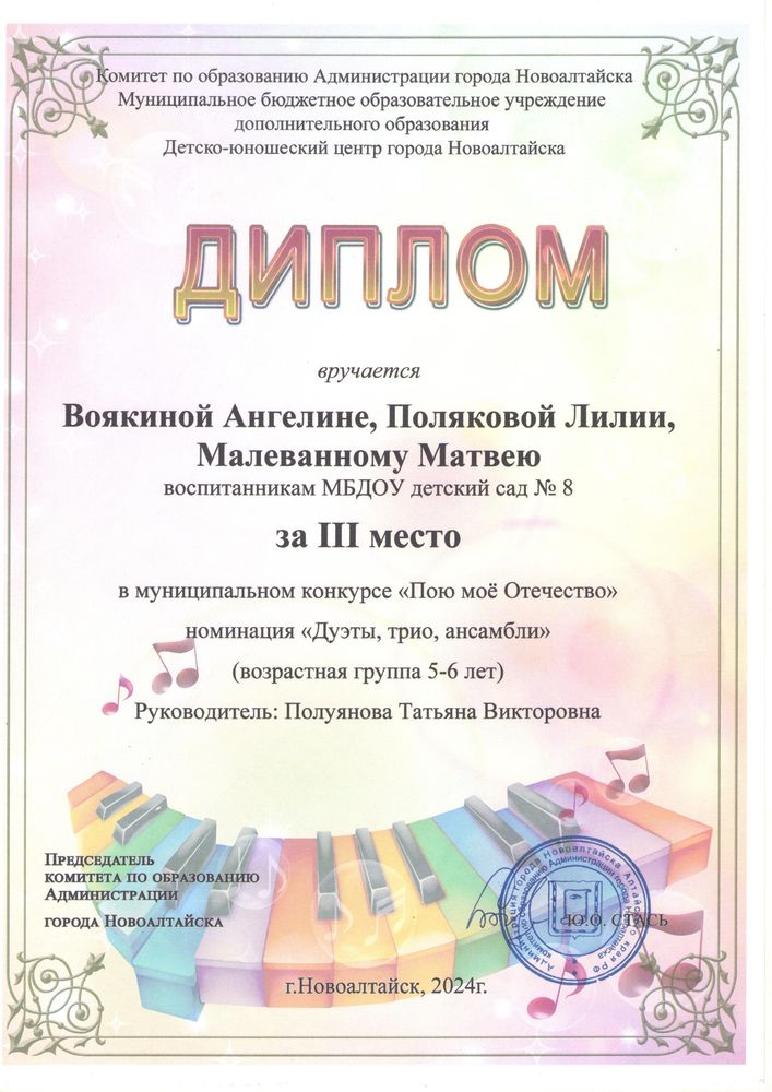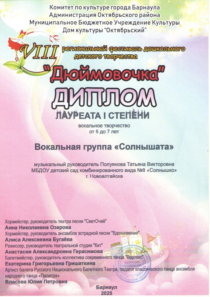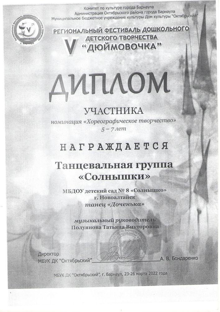 Муниципальное бюджетное дошкольное образовательное учреждение детский сад комбинированного вида № 8 "Солнышко" города Новоалтайска