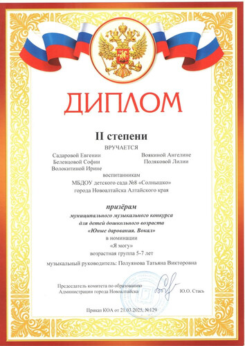Муниципальное бюджетное дошкольное образовательное учреждение детский сад комбинированного вида № 8 "Солнышко" города Новоалтайска